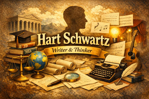 Hart Schwartz is an original and highly versatile thinker whose work bridges analysis, narrative, and creative development. His writing spans policy, history, economics, ethics, and concept-driven creative works, reflecting a consistent ability to synthesize complex ideas and reveal unexpected connections.He is particularly drawn to projects that require multidimensional thinking — situations where clarity emerges not from simplification, but from recognizing structure, relationships, and hidden assumptions. His approach is grounded in pattern recognition, conceptual depth, and the disciplined shaping of ideas.Among other works, he developed a full concept album for a Broadway-scale musical in just three months — an example of both rapid creative generation and sustained thematic coherence.He holds an International MBA from the University of Denver, a J.D. from Syracuse University, and a Bachelor of Arts in Economics and Political Science from Yeshiva University.Well-read and well-traveled, his work is guided by the belief that insight, perspective, and articulation transform both arguments and creative endeavors.